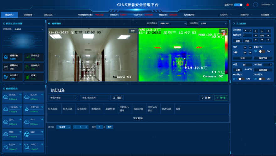 “穗・eGo”通过环境监测模块与具身智能平台的深度集成,推动监测模式从“固定部署”向“移动感知”转型。内置AI智能算法,不仅实现自主避障导航,更能基于实时数据智能分析趋势,实现预测性预警。基于模块化的设计理念,机器本体统一提供网络通信及电源,使其可根据不同应用场景,快速更换或增配其他监测模块,极大拓展了设备的场景适应性与功能延展性。
