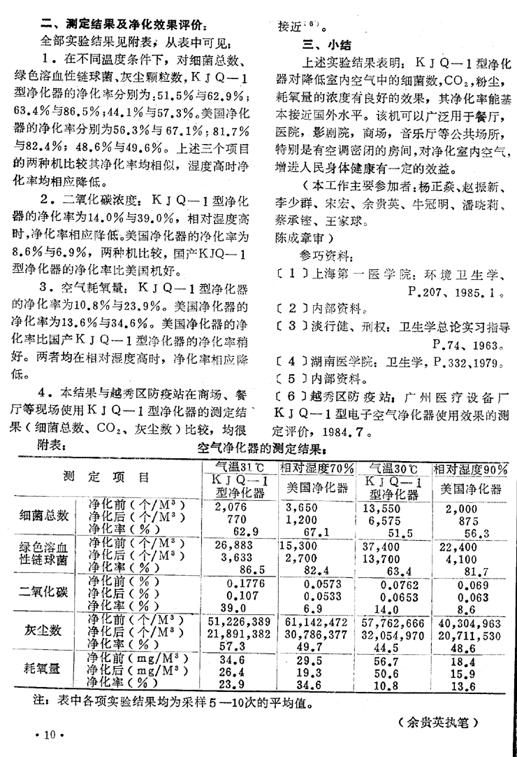 KJQ—l型电子空气净化器净化效果的测试与评价…中山医科大学卫生系环境卫生教研室(9)