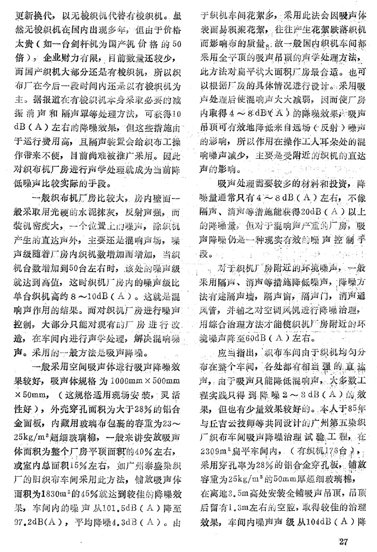 纺织厂的噪声与治理初探…………………刘济平(25)