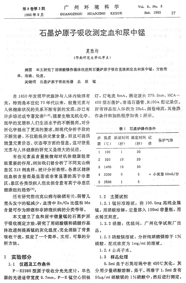 石墨炉原子吸收测定血和尿中锰………………………莫胜均(27)