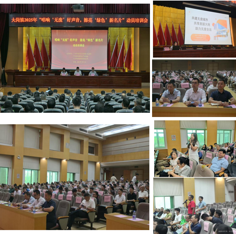 为响应国家“无废城市”建设号召,助力十五运会“无废全运”落地,促进绿色环保与无废理念紧密联结,2025年7月31日,大岗镇联合广东省环境保护产业协会、广州市怡地环保有限公司举办“唱响‘无废’好声音,擦亮‘绿色’新名片”动员培训会,大岗镇副镇长主持了会议,会议组织了政府公职人员、各村(社区)书记,以及学校、工业企业、建设工地、酒店、商场和景区等单位代表共300余人参加。