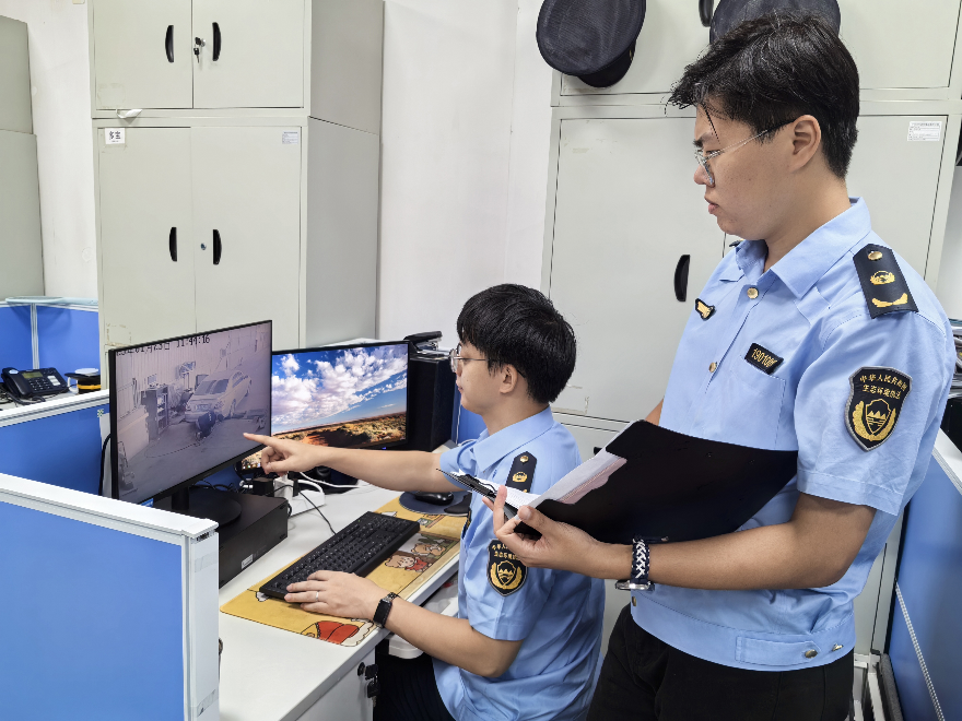 图:荔湾分局执法人员对机动车检测机构开展非现场监管