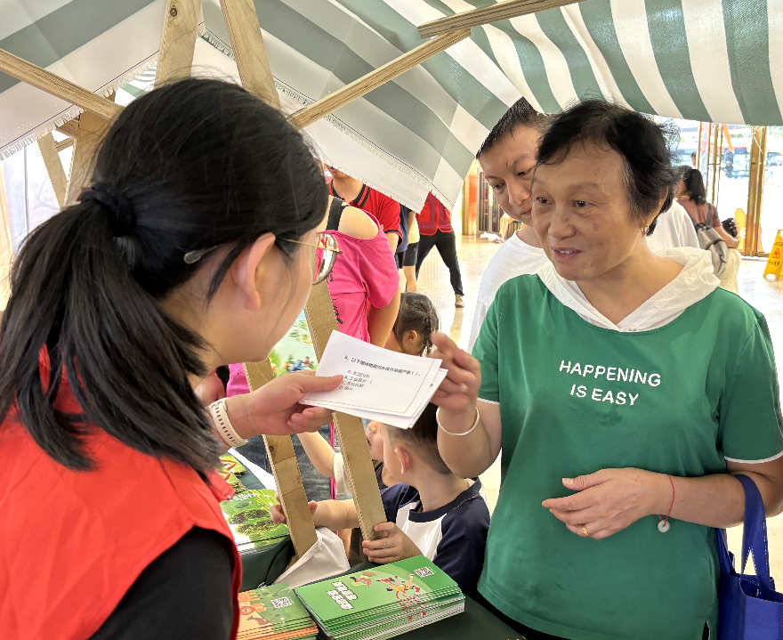 活动专设集市体验区,将“绿色低碳”理念贯穿始终。在志愿者的指引下,市民积极参与“垃圾分类”“环保知识问答”等游戏。志愿者化身环保科普员,用通俗易懂的语言细致地为居民讲解垃圾分类、节能节水、绿色出行等环保知识,深入浅出地阐述生态保护的重要性,有效引导市民践行绿色低碳健康的生活方式。