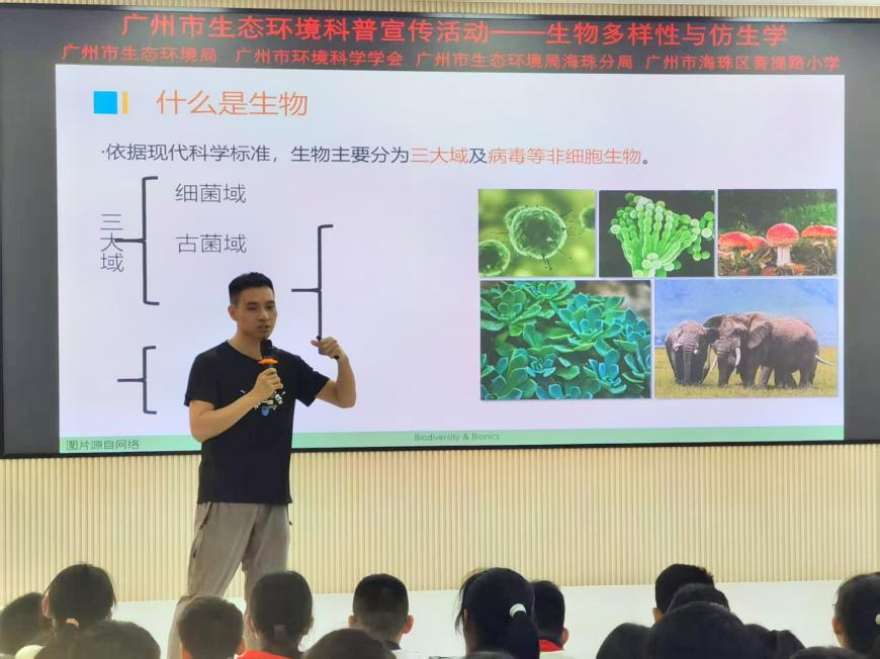 近日,广州市生态环境局海珠分局联合广州市环境保护宣传教育中心、广州市环境科学学会在海珠区菩提路小学成功举办了一场生物多样性与仿生学的科普讲座。