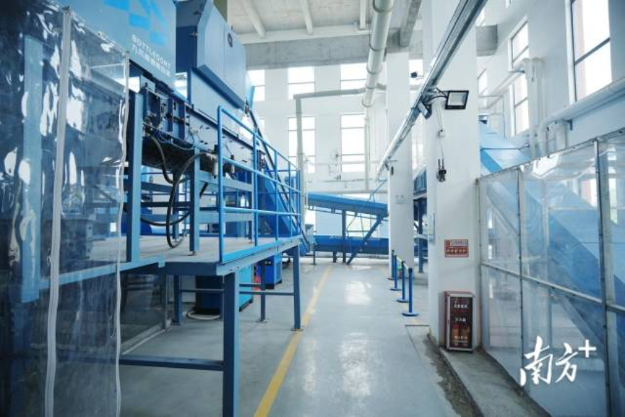 白云区城市管理和综合执法局分类管理科负责人介绍,“在中端,我们建成了省内首个全自动化大件废弃家具处理中心和市内首个全自动分拣废玻璃回收处理中心,年处理能力分别超过1万吨、6万吨,实现了100%资源化利用。在后端,白云区正在积极筹备打造100亩循环经济产业园,将按照工业上楼高标准厂房进行建设,导入废塑料、废金属、废旧电子产品的回收精加工再利用等产业,进一步提升区域资源循环利用能力。”