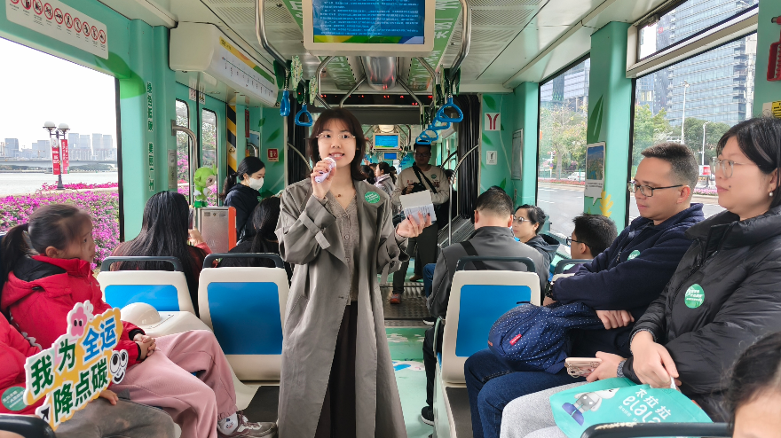 活动在广州塔有轨电车车站正式启动。在“美丽广州 山水花城”主题电车上,参与者沿珠江南岸穿行,透过车窗领略两岸如画的生态景观:沿线绿树成荫、花团锦簇,海心桥如彩虹般横跨江面,滨水绿道上人们悠闲漫步。随车讲解员系统介绍了车厢内的“云山青”“珠水清”“花城美”“未来明”四大主题展区,结合眼前实景讲述广州治水增绿、城市更新的生态故事。