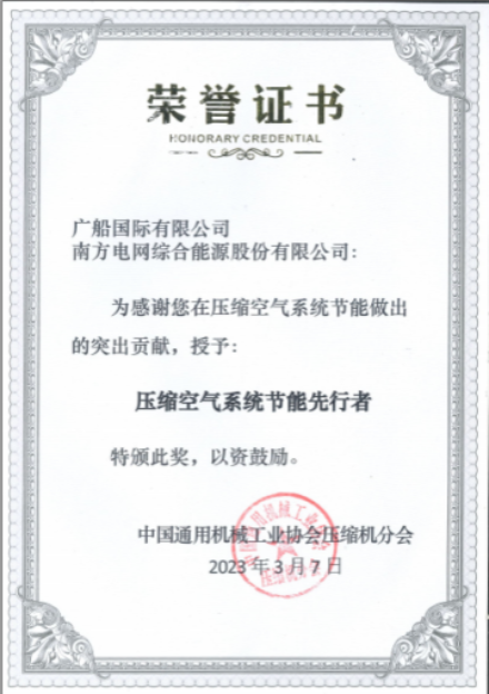 “一级能效压缩空气站”“压缩空气系统节能先行者”