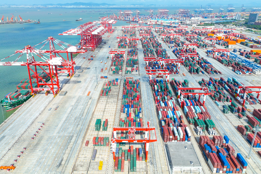 广州港南沙四期全自动化码头是目前全球最大的平行布局全自动化码头,也是粤港澳大湾区首个全新建造的自动化码头,可适应多式联运的作业模式,具备水水中转比例高的集疏运特性。采用了新一代的全自动化码头技术路线,全球首创北斗导航无人驾驶智能导引车。实现装卸设备100%电动化,所有泊位岸电设施100%覆盖,积极推动可再生能源应用,2025年至今实现港区90%以上绿电目标并取得绿证,全面推进分布式光伏发电项目建设,采用“自主建设”与“市场采购”双模式驱动绿色电能供给,实现绿色电力供给占码头用电的90%以上。在港区装卸机械全电动化、水资源循环利用、泊位岸电设施建设、生产智慧化、多式联运体系等方面取得显著成效,每年降低能耗约55%,减少碳排放量约56%,实现污水“零排放”,探索出一条向生态近零碳港口发展的新路径。荣获“亚太绿色港口”称号,成为广州港首个获此奖项的集装箱码头,入选交通强国建设试点典型经验清单(第一批)、《推进近零碳港口建设》项目入选广州市减污降碳协同增效优秀案例,共3项节能减排新技术获得国家知识产权局授权的发明专利证书。