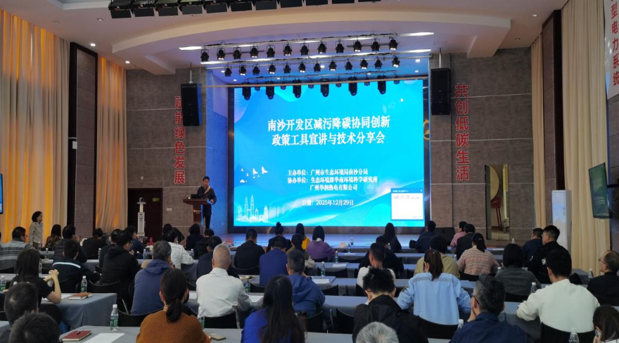 2025年12月29日,广州市生态环境局南沙分局举办南沙开发区减污降碳协同创新政策工具宣讲与技术分享会。会议汇聚了行业权威专家及区内重点企业代表70余人,聚焦南沙开发区产业特色与企业绿色低碳发展的核心需求,搭建一个集政策传导、技术推广、案例借鉴与金融支持于一体的高水平交流协作平台,赋能南沙产业高质量发展。