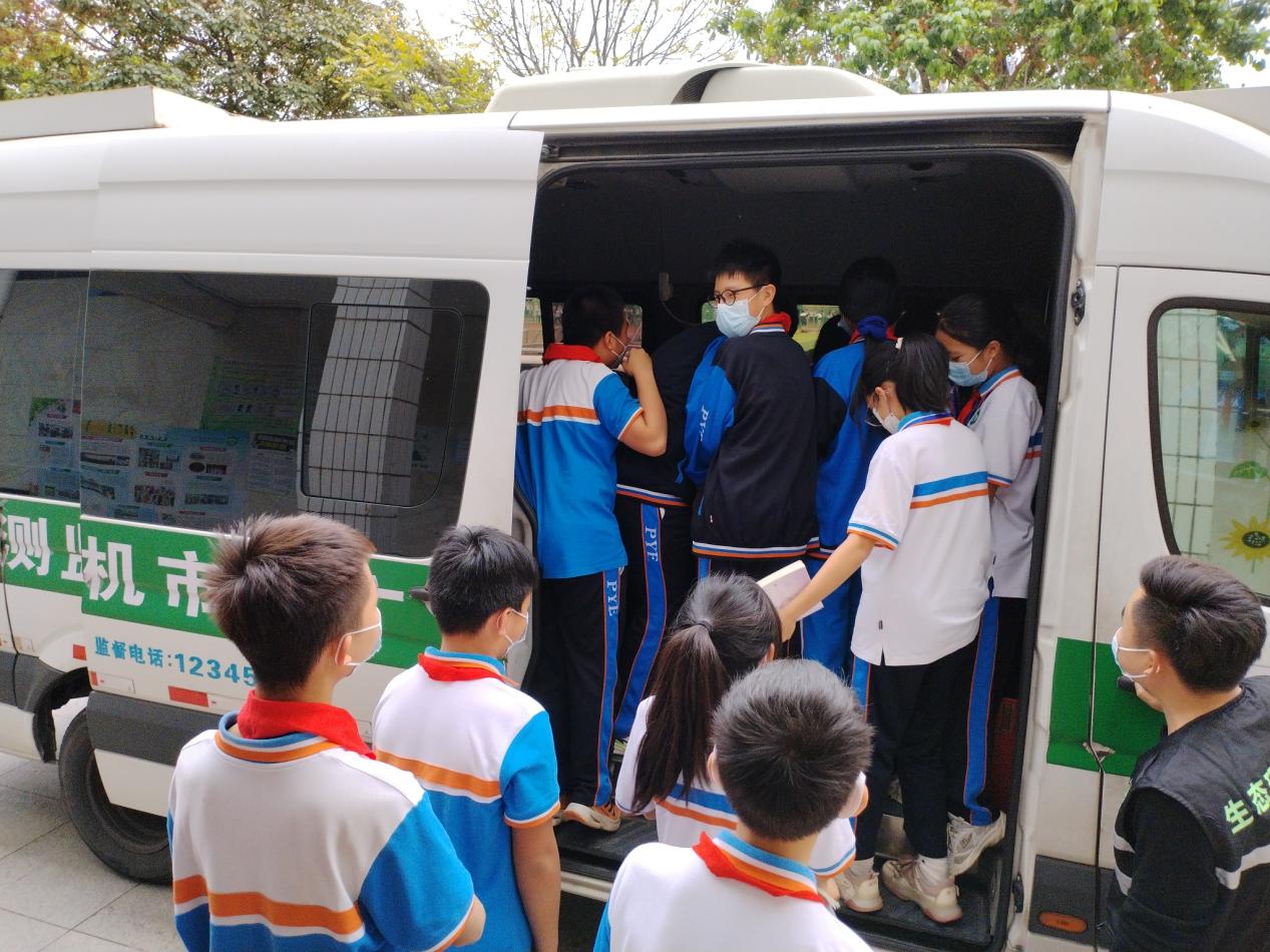 本次活动,该局工作人员首先介绍了番禺区生态环境保护历程和现状,其中重点讲解了番禺区环境监测网络建设情况,包括空气自动监测站点、水质自动监测站等。随后,从环境监测设备的主要用途、工作原理、技术要点等方面向同学们讲解了VOCs走航监测车、遥感监测多功能车等环境监测新装备,及透明度计、水质采样器、噪声分析仪、风速计等仪器,并现场演示了部分设备的操作流程。演示结束后,该局工作人员指导同学们动手进行水和噪声的模拟监测,并近距离观察遥感监测多功能车。最后,该局工作人员从水、气、声三个方面向同学们介绍了环境污染对人们日常生活的危害,教导同学们保护环境要从小做起、从点点滴滴做起,要用实际行动一起见证番禺区天更蓝、水更清。