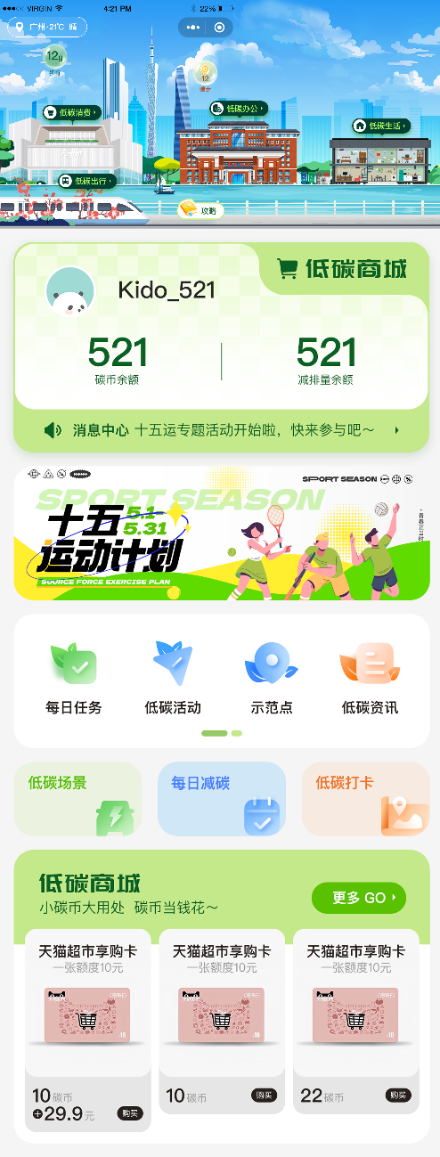平台首创组织减碳系统模块,实现个人与组织碳账户的互联互通;同时联动碳普惠商家联盟,将市民的减排量转化为购物折扣、服务优惠等可直接获益的资产,构建起“减排—消纳—再激励”的良性循环生态。真正实现“行为数据—碳资产—经济价值”的有效转化。