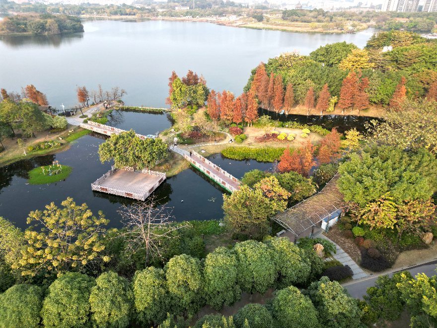 科普创新,开启水生植物园自然之窗。白云区将白云湖水生专类植物展示园作为区域生态建设亮点工程,投资220万元打造特色水生植物保育基地,保育了香蒲、水葱、美人蕉、千屈菜、荷花等特色水生植物110余种,沿湖岸以景观形式,打造崇廉园、揽湖观舞、东亭看云、众星拱月、龙舟竞渡等环湖景点,成功塑造了集水安全、水环境、水景观、水生态、水文化、水经济于一体,融合湿地特征与岭南水乡风格的水生植物风景区。不仅精心保育与展示丰富多样的水生植物景观,还深入挖掘其独特文化内涵,通过增设科普路径、植物铭牌及专业讲解服务,将水生植物保育与文化传播深度融合。通过联合科研机构推动成果转化,打造“科研-展示-教育”三位一体平台,推动形成可复制的城市生态智慧治理样板。