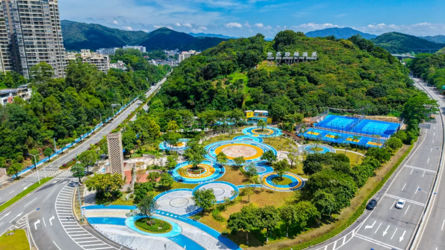 沿途结合地形地貌,设置了多处休憩节点与观景驿站(如温泉入口广场驿站、流溪温泉广场驿站、彩虹桥驿站),方便游客小憩、赏景、拍照。慢行系统不仅是一条交通线,更是一条流动的生态人文展示廊道,让“慢下来”的旅程充满惊喜。