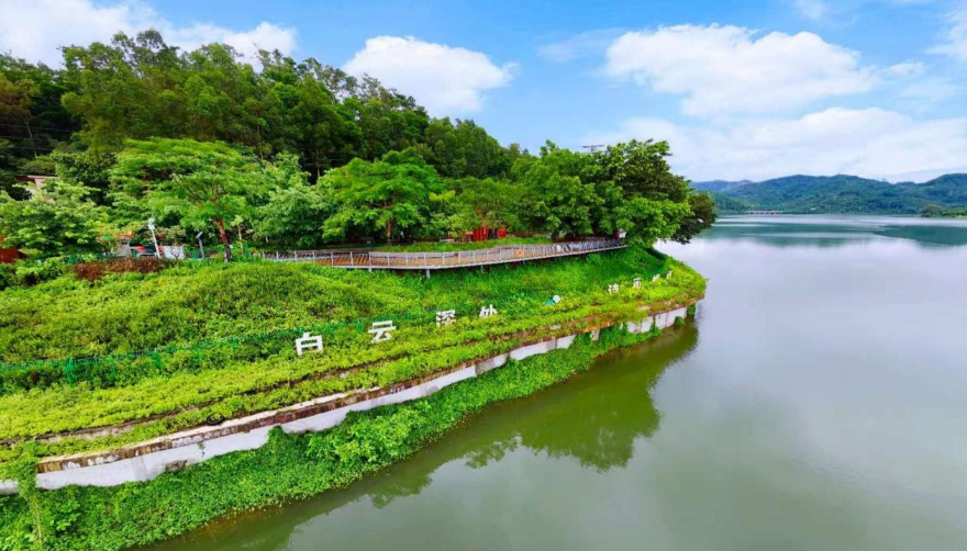 3.7公里的环库景观廊道如诗如画,“天光云影”等十大景观节点熠熠生辉,串联白山村和沙田村形成“白云深处·诗画帽峰”新乡村示范带,吸引游客纷至沓来,文旅融合发展势头强劲,成功实现了从单一水利工程向“花园式”绿色空间的转型,为功能型水库综合治理、运营管理与开发利用提供了“白云经验”。
