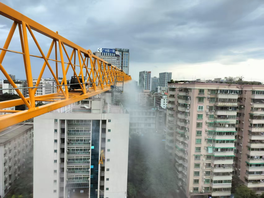 图:白云区施工工地安装塔吊喷淋设备并常态化洒水降尘