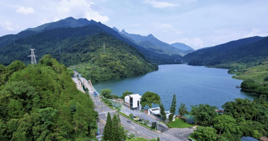 彩虹桥驿站,位于流溪河国家森林公园的彩虹桥驿站,是从化最美旅游公路示范段(起于温泉镇入口广场,止于良口镇国道彩虹桥)的重要枢纽。在彩虹桥驿站,刚走完森林步道的退休教师刘大爷正坐在观景台休息,面前是流溪湖的粼粼波光。“这个驿站建得好啊,以前爬山累了没地方歇,现在有座椅、有遮阳棚,还能看风景。建筑跟山水融在一起,不破坏环境,这才是真正为老百姓建的好地方!”驿站通过改造现有建筑组团,以“山形”和“从”字为设计语言,融入自然材料与通透材质,实现建筑与山水风景的无缝融合。目前已完成国道旁建筑改造、北边山体林相优化、临湖景观绿化提升、森林步道修复及自行车驿站建设,串联流溪湖景区、五指山景区,为游客提供“慢行赏景”的优质选择,模糊建筑与自然的边界,让游客在休憩中感受山水之美。