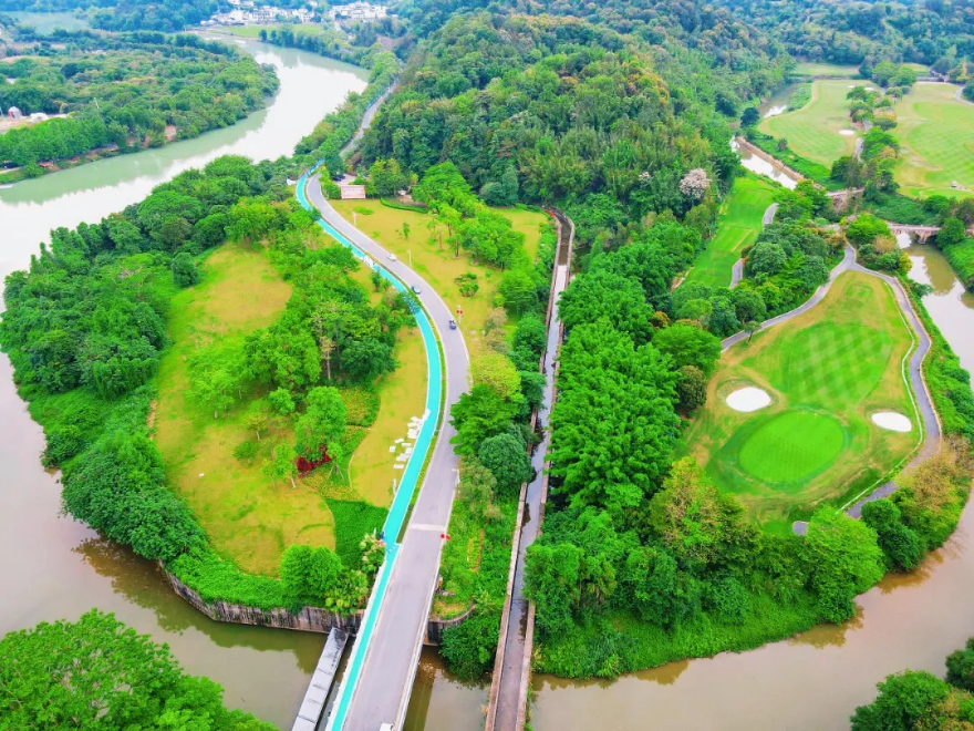 这条总长20公里的滨河绿道,以温泉镇人工湖桥为起点,深度串联广东温泉宾馆、从都湿地公园、国家版本馆广州分馆、生态设计小镇等核心节点,形成一条沉浸式风景廊道,真正实现“人在景中游”。