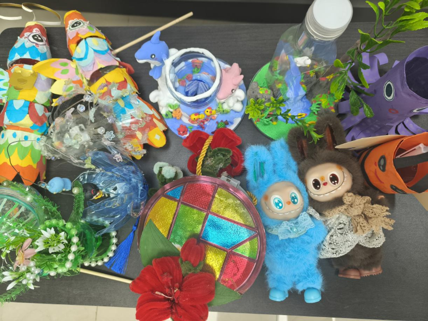 活动前期,由街道向社区居民发起“塑料瓶回收召集令”,提前一周收集PET、PP材质的废弃塑料瓶。活动当天,塑料瓶创意再生环保行动及成果展区受到亲子家庭的追捧。在工作人员的引导下,活动参与者一起开动脑筋,将喝完即弃的塑料瓶改造成笔筒、多肉花盆、灯笼、小夜灯、微景观、玩具等兼具美观与实用价值的文创品。这些原本要被丢弃的“垃圾”,经过巧手加工后焕发新生,不仅传递“减量-再用-再生”的生态环境保护理念,更让参与者直观感受到“垃圾是放错位置的资源”。