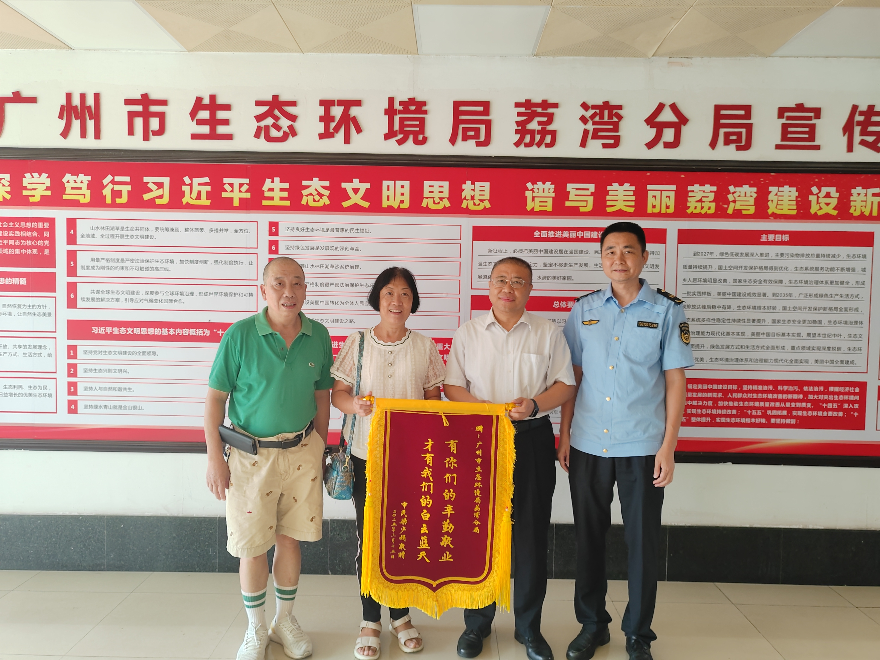 图:群众向广州市生态环境局荔湾分局赠送锦旗