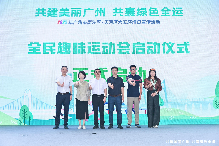今年恰逢第十五届全国运动会和全国第十二届残疾人运动会暨第九届特殊奥林匹克运动会在粤港澳三地举办,天河区和南沙区作为全运赛事承办地,以《十五运会和残特奥会广州赛区打造美丽全运实施方案》为纲领,围绕赛事环境保障靶向攻坚、精准施策,统筹做好减污降碳等各项工作,着力营造“蓝天碧水净土静音”的赛事环境,全力协助办好“绿色全运”。本次两区联办的六五环境日宣传活动,更是以践行“绿色全运”理念为纽带,整合双方资源优势,设计“成果展示+公众教育+低碳实践”于一体的互动场景,开展“生态健步走”等全民运动、环保知识问答与科普“摊位打卡”相结合的系列活动,串联起生态环境保护与全民健康运动相融合的新风尚。