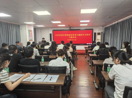 培训内容围绕两大重点展开。在医疗机构固体废物规范化管理方面,培训结合现行法律法规及十五运会和残特奥会相关要求,系统讲解医疗废物分类、收集、贮存、转运和处置等环节的标准操作规程、台账记录要求、风险隐患排查要点以及应急管理措施,强调各医疗机构必须依法依规履行主体责任,确保医疗废物得到安全、及时、有效处置,杜绝二次污染与环境风险。培训进一步聚焦核技术利用辐射安全与污染防治管理,详细解析辐射安全许可证管理、辐射工作场所安全要求、辐射监测与个人剂量管理、放射性废物处理、辐射事故应急预案制定与演练等关键内容,要求各单位务必牢固树立“辐射安全无小事”的理念,严格遵守辐射安全法律法规,完善内部管理制度,加强人员培训与防护,确保核技术利用活动全程安全可控。
