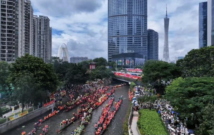 生态治理与文化传承巧妙结合焕发生态文旅美丽经济。高标准推进车陂涌整治与碧道建设,传承“车陂扒龙舟”等非遗文化,吸引社会力量广泛参与,形成“民俗+治水”双保育模式,每年车陂涌龙舟赛吸引近20万人次,有效带动周边文旅消费,擦亮“体育+生态+文化”新名片。深入挖掘猎德环境之美、历史之美、文化之美、时代之美,打造展示岭南文化魅力和现代国际气质的猎德国际街区。猎德街区日均客流约为18.69万人次,猎德旅游区成为广州首个以现代化都市旅游为特色主题的国家3A级旅游景区,诠释广东最美公共文化新空间。