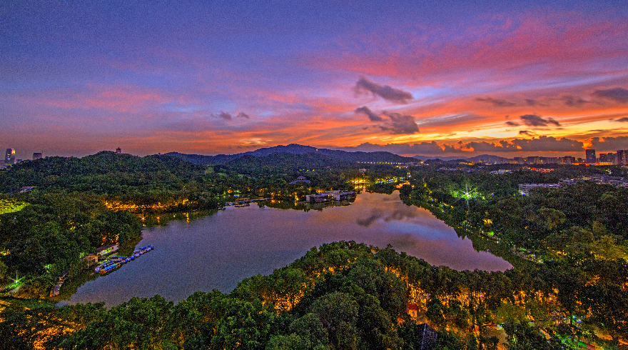 麓湖古称玉液池,地处广州市越秀区白云山风景名胜区南麓,发源于白云山,曾是周边重要的饮用水源和交通要道,是广州市四大人工蓄水湖之一,也是东濠涌的源头。麓湖曾因浊流侵袭、活水匮乏、功能单一导致生态失衡、水体污染,越秀区以“外控污染,内调生态,景观提升”为总体思路,以“山水林田湖草沙”生命共同体理念为中心,画好生态环境系统性多维修复治理工作的“同心圆”,再现“一山环秀水,半岭隐涛声”的诗意场景,经治理后的麓湖成功入选广州市美丽河湖优秀案例。