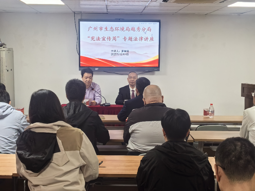 2025年12月4日,正值全国第12个国家宪法日,广州市生态环境局越秀分局围绕法治建设与实际工作需求,邀请了全国优秀律师唐健锋,送上一堂生动务实的法治课堂,局领导班子和干部职工共50余人积极参加,讲座内容从理论学习到实践运用,全面提升法治思维,锻炼执法本领,筑牢生态环境保护法治根基。