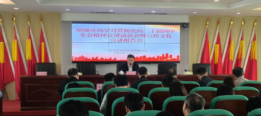 11月14日,市生态环境局增城分局召开宣讲报告会,认真学习贯彻党的二十届四中全会精神、习近平总书记视察广东和出席第十五届全国运动会开幕式重要讲话重要指示精神。局党组书记、局长汤宇杰作主题宣讲报告。