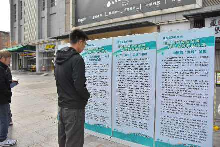 活动现场设置专门的宣传展位,形成沉浸式学习场景。工作人员向市民派发“一分钟扯碳”“习近平生态文明思想”“全面推进美丽中国建设”等宣传资料,通过展板展示气候变暖的原因、带来的危害及应对措施,鼓励公众从日常生活的点滴做起,践行绿色生活方式。