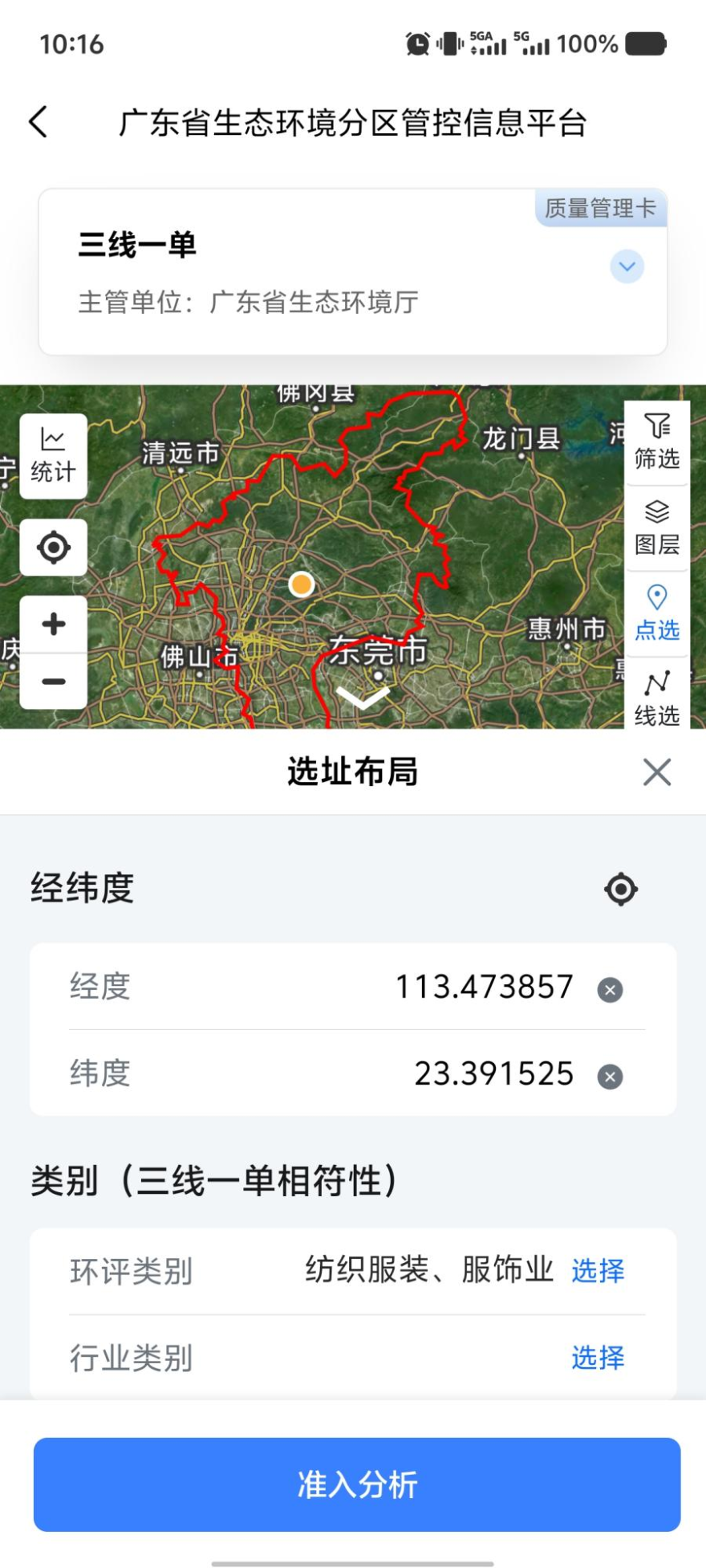 1.通过粤商通APP—服务—生态环境—三线一单事项,进行访问。