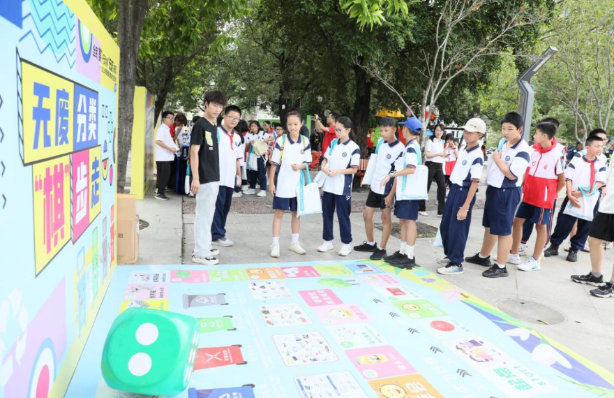 活动现场还设置了“无废分类‘棋’步走”“无废找‘茬’行动”等互动游戏,将生态环保和绿色低碳知识融入趣味体验中。各个摊位前人头攒动,欢声不断,轻松愉快的氛围让“无废”理念悄然走进大家心中。
