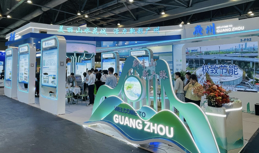 为响应粤港澳大湾区建设号召、推动绿色经济发展、助力广州环保企业开拓国际市场,市生态环境局专门搭建以“美丽山水花城 活力新彩广州”为主题的广州馆,组织广州市怡地环保有限公司、易碳科技(广东)有限公司等9家“专精特新”环保企业参展,全面展示广州在大气污染防治、水环境治理、固体废物处置及资源化利用、人工智能与环境执法监管融合、气候变化应对管理等领域的技术成果与先进产品。