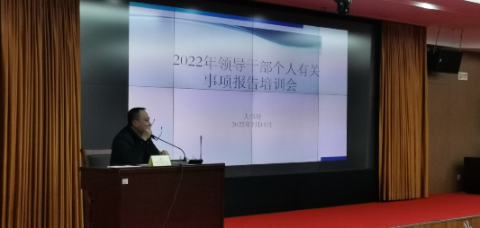 2022年2月11日下午,市生态环境局在局机关16楼会议室举办2022年领导干部报告个人有关事项专题培训会,传达上级有关个人事项报告工作指示精神,通报去年局个人事项报告情况,并对今年填报工作进行讲解。局领导及局机关处级领导干部和一级、二级调研员,各分局领导班子成员(不含正科级干部)和一级、二级高级主办,各直属单位领导班子成员和二级调研员约100人参加培训会。