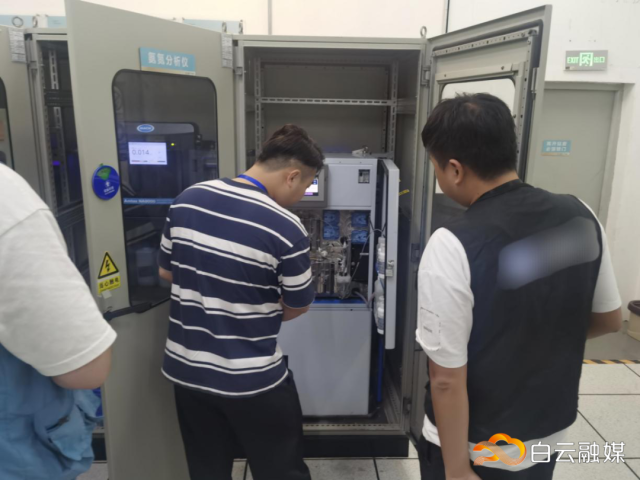 广州市生态环境局白云分局执法人员对加油站监测人员进行在线监测系统现场指导。