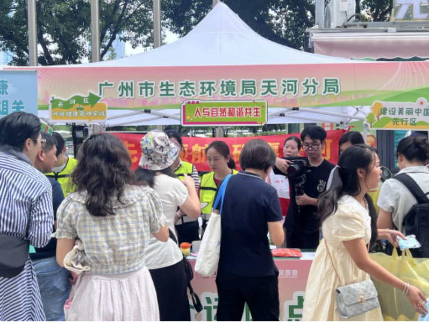 为深入践行“健康中国”战略,积极落实《广州市国家环境健康管理试点工作方案(2025-2027年)》要求,全面提升公众环境健康素养,2025年8月起,广州市生态环境局天河分局(以下简称“天河分局”)以迎接十五运会和残特奥会为契机,坚持党建赋能,围绕“健康领航·绿色全运·碳惠天河——共筑环境健康防线”主题,组织开展“进商圈、进企业、进社区”系列宣传活动,通过“三走进”推动环境健康知识直达基层、健康理念深入人心,营造“环境健康,你我共建”的良好社会氛围,筑牢群防群控、共建共享的环境健康防线。