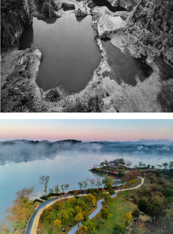 曾经满目疮痍的废弃采石场,如今已蜕变为草木葱茏、碧波荡漾的生态综合体;同时,村里引入美丽赤坭先行镇部署的重点项目——竹洞村生态文旅项目,使其成为粤港澳大湾区生态文明建设与生态价值转换的标志性成果。