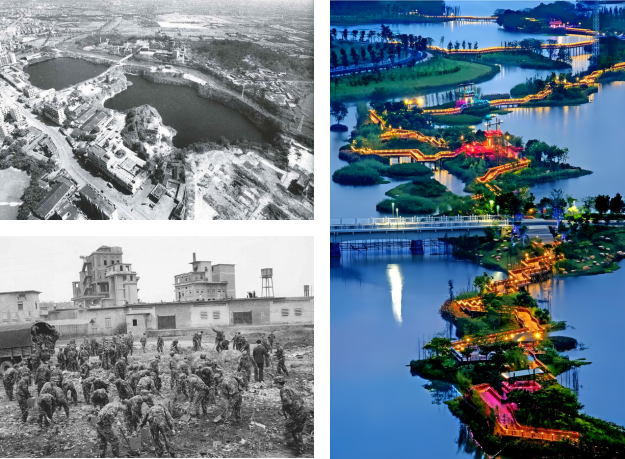 花都湖所在区域是昔日新青水泥厂及采石遗址,花都区通过新街河河道综合整治及环境建设工程为依托连通花都湖湖体、新街河干支流等水系,构建“源头截污-过程净化-末端调蓄”三级体系,将这片荒蛮滩涂改造成花都湖国家湿地公园,同时拟通过“国际大师操刀+工业遗址活化”将原新青水泥厂现存36栋工业建筑“变身”世界级文化地标,书写一部工业遗迹生态修复的生动教科书。