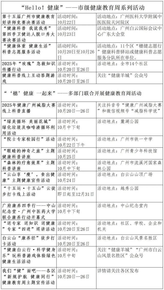 “新规护航 健康同行”广州市第二十五届健康教育周启动活动将在10月19日(本周日)上午在白云山云台花园广场举行。今年1月1日,《广州市健康促进与教育规定》(以下简称《规定》)正式施行,作为全国首部健康促进与教育的地方性法规,标志着健康中国战略在广州得到更生动的诠释与落地。《规定》明确:“每年10月第三周为本市健康教育周”。