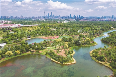 曾濒临消失的万亩果园变身广州海珠国家湿地公园。(市生态环境局供图)