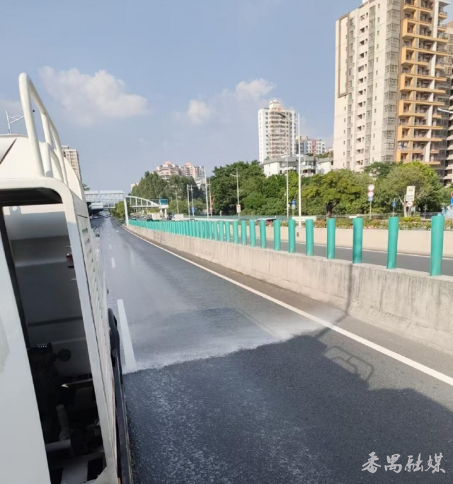 为抑制道路扬尘,沙头街显著加大了机械作业强度。重点路段上,扫地车、高压清洗车、洒水车和雾炮车日夜轮番作业。数据显示,今年以来各类作业车辆已累计出动7040车次,确保核心区域路面持续湿润,有效降低了空气中的颗粒物浓度。