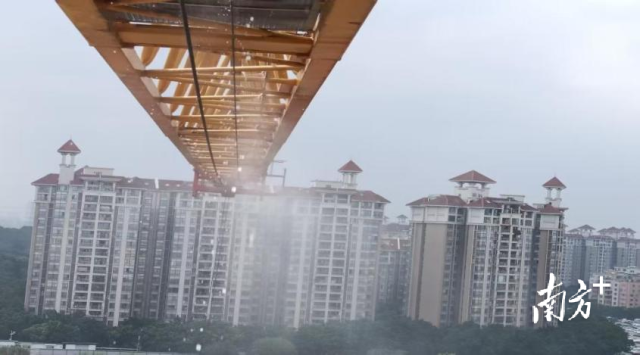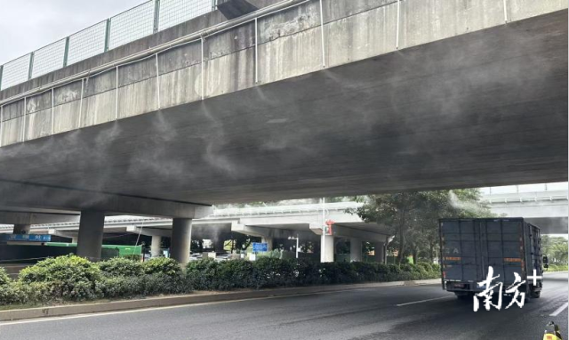 在车流量较大的机场高速与均禾大道、加石路交会处高速桥底,创新性安装固定喷淋系统,设定每半小时喷淋一次、每次持续半小时的作业模式,对该区域道路扬尘起到显著降尘效果,有效遏制“流动污染源”扩散。