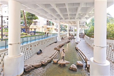变靓不难,难在维持美并越变越靓,这离不开越秀区精细化的城市治理。河长制在越秀落地生根,各级河长常态化巡查东濠涌,全民治水的氛围浓厚。我走访时,就曾看到进行假期实践活动的学生志愿者来巡河。在亲水平台上锻炼的街坊黄姨说,东濠涌蝶变是市民共建共治共享的生动实践。“经常见到工作人员来巡查,社区也组织了志愿者进行保洁,我们街坊也会自觉爱护环境,大家共同守护。”