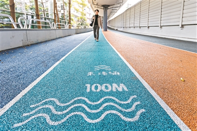 生态改善激活了空间活力,东濠涌沿线已成为越秀区文商旅融合发展的重要廊道。河涌东岸新添的“东濠涌”彩色嵌瓷字样格外醒目,吸引了很多市民在此拍照。在东濠涌博物馆段,8000平方米的桥底空间涂装成白色后变得清朗明亮。更让我惊喜的是,昔日水泥地面的步道,升级为铺装了彩色沥青的缓跑径,用鲜艳的颜色与非机动车道区分,串联起桥上桥下,成为老城区鲜活的风景。