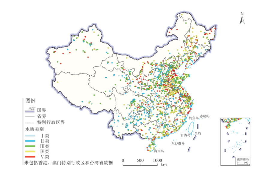 2024年全国地下水水质分布示意图(来源:2024中国生态环境状况公报)