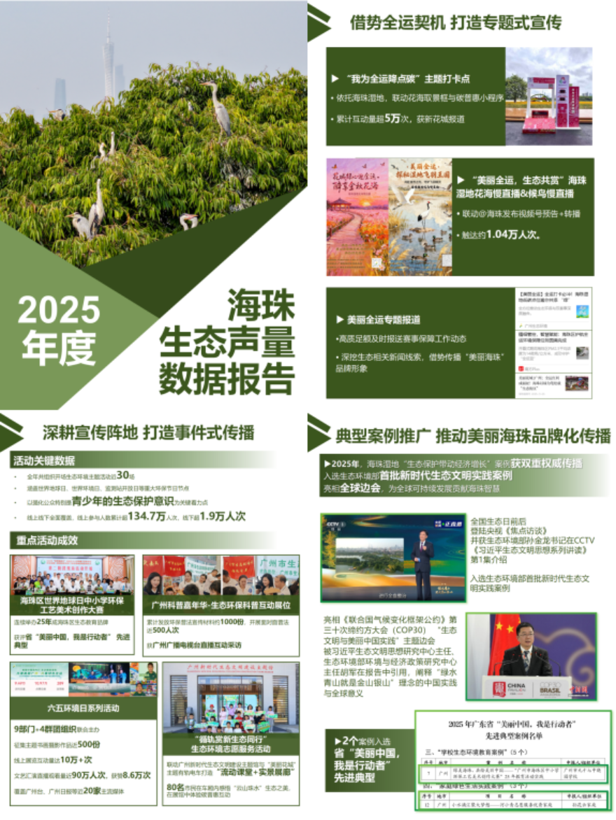 为系统梳理2025年度生态文明宣传成效,海珠区重磅发布《2025年度海珠生态声量数据报告》,以数据串联起这一年生态文明宣传的“高光瞬间”。